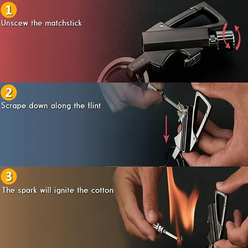 - Compact and Portable: Always have a fire starter and bottle opener within reach.