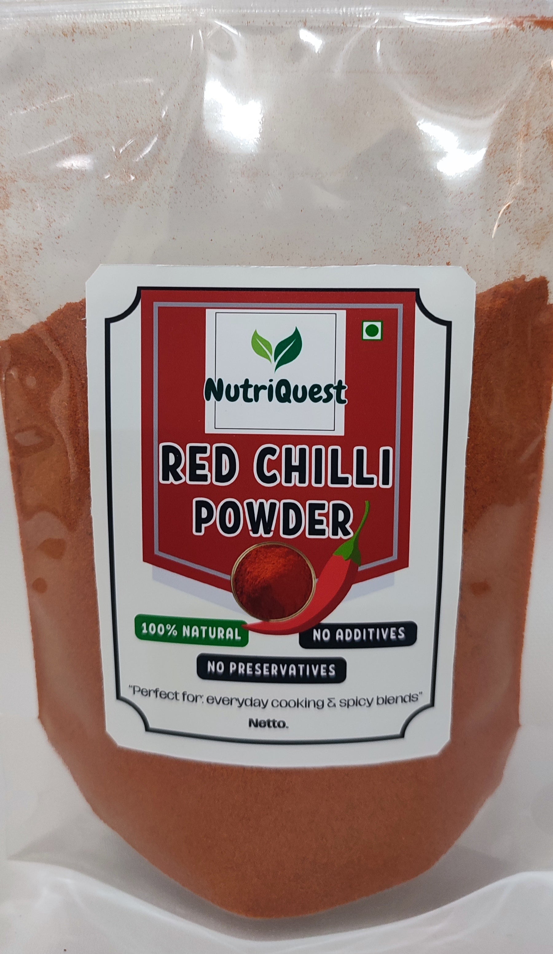 Ignite your dishes with bold flavor and natural heat using NutriQuest Red Chilli Powder — made from premium red chillies that are solar-dried and finely ground to retain their fiery color, spicy kick, and essential nutrients. Packed with capsaicin and antioxidants, this spice supports metabolism and adds depth to every meal. A staple for any kitchen.